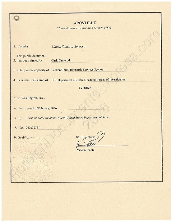 Use Foreign Documents Express – Expedite processing through a professional service (two and a half weeks). If you have a PDF file, just email it to us or order an FBI apostille online using the form on the right.