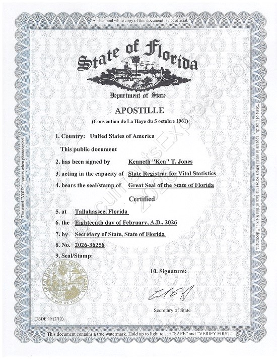 Florida Single Status Certificate and Affidavit Apostille Services