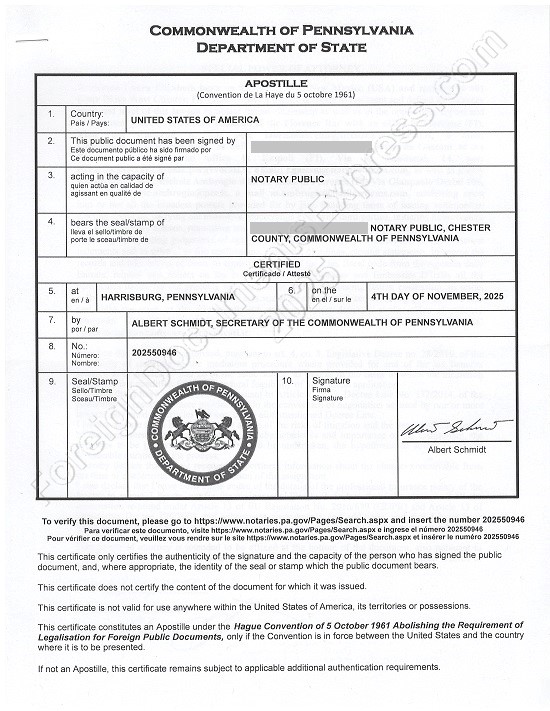 School transcripts and diplomas should be certified by a school official and notarized by a Pennsylvania notary (see the notarization requirements above). Read more about apostille requirements for school transcripts in Pennsylvania...